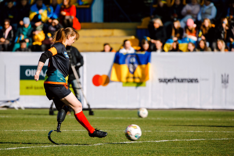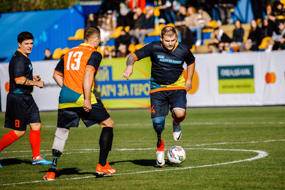 "Match for Heroes 2.0" is a continuation of the charity initiative by Mastercard and Oschadbank, where veterans with amputations first met on the football field with Ukrainian stars. This collaboration raised over 7.7 million UAH for sports prostheses for patients at the Superhumans Center.