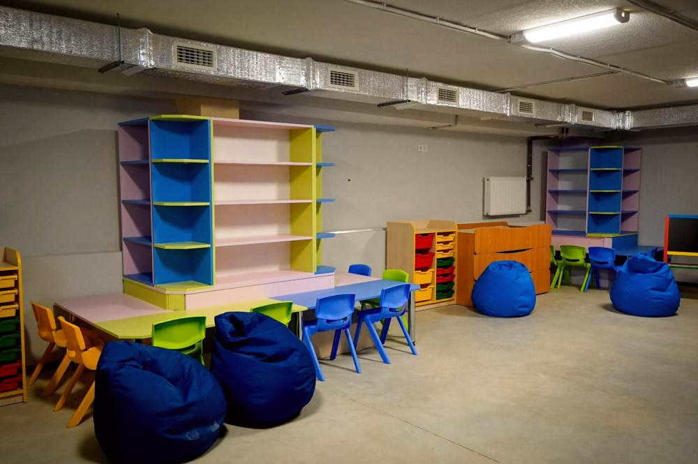 The facility also has a shelter that is modern and comfortable, featuring inclusive elements, good lighting, and a ventilation system. Children can not only wait out any danger but also continue their educational activities, play, or rest on comfortable beds.