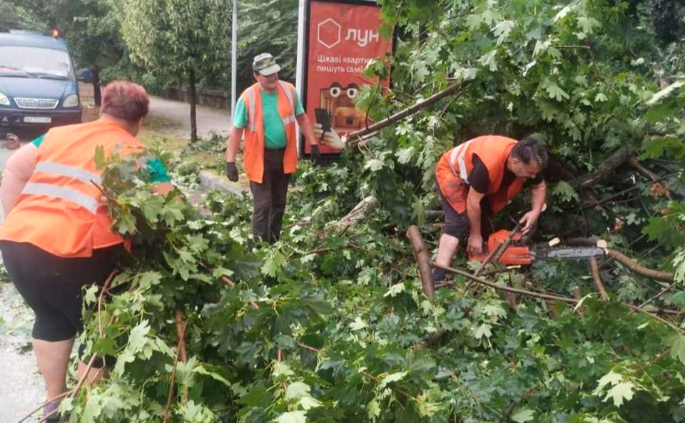 More than 40 employees of the "Kyivzelenbud" municipal enterprise and 15 rescuers from the city rescue service are working to eliminate the storm's consequences.