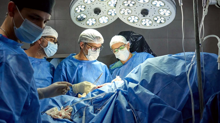 In the capital of Ukraine, doctors conducted a remarkable laparoscopic surgery to remove a colon tumor from a woman in late pregnancy. The lives of both the mother and her baby are not at risk.
