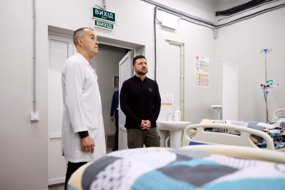 The hospital director briefed the President on the situation in the surgical unit, which is treating individuals suffering from multiple blast injuries due to drone attacks and artillery shelling. Additionally, the facility features an underground resuscitation module, allowing doctors to provide surgical assistance in a safer environment.
