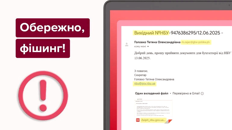 The National Bank of Ukraine has identified a new fraudulent scheme involving the distribution of emails containing malicious attachments that impersonate official NBU communications.