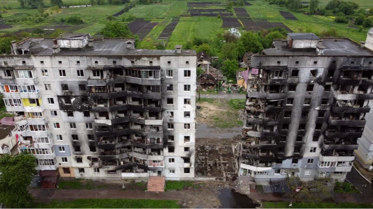 A new nine-story building for 270 people, complete with an underground parking lot and shelter, is to be built by the end of 2026 on Centralna Street, 353 in Borodyanka, Bucha District. The old building at this address was destroyed in March 2022 due to Russian bombing, and in November 2022, British artist Banksy created a drawing of a gymnast on its ruins.