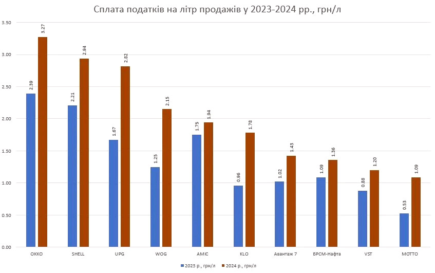 "Profit tax increased by 1.5 times to 2.2 billion UAH. Again, growth ranged from 13% in OKKO to 2 times in WOG and UPG, and 7.5 times in Motto. KLO and Avantage 7 showed a decrease in profit," noted the head of "A-95".
