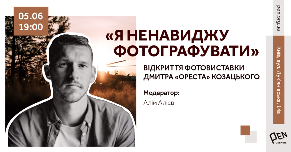 On June 6 at 6 PM, the PEN Ukraine space (Kyiv, Lukyanivska St., 14-A) will host the opening of an exhibition by military photographer Dmytro "Orest" Kozatsky titled "I Hate to Photograph". Details about the event are posted on the Facebook page.