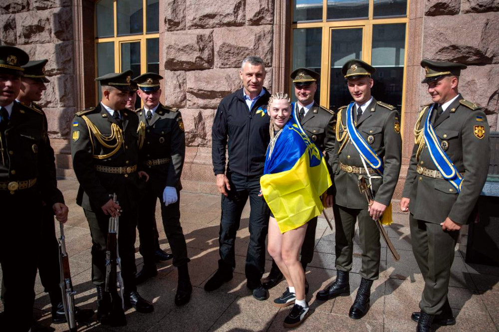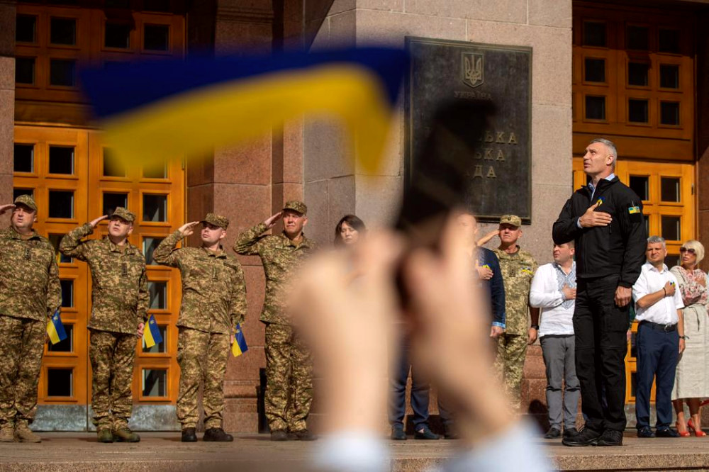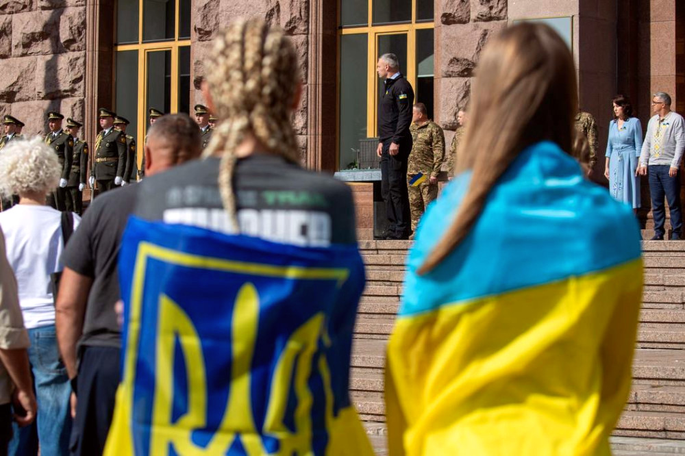 Today, the national flag of Ukraine was ceremoniously raised near the Kyiv City Hall. The event was attended by military personnel, city council members, and community representatives.