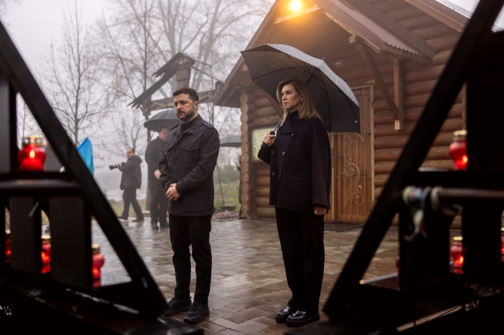 Volodymyr and Olena Zelenska lit candles at the cross on the Alley of Heroes of the Heavenly Hundred.