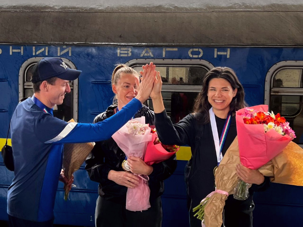 Today in Kyiv, the Central Railway Station hosted a celebratory welcome for the Ukrainian national fencing team, returning from the European Championship held from June 14 to 19 in Genoa, Italy. This was reported by Ukrzaliznytsia.