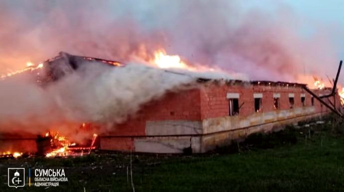 On the night of May 31, five enemy drones targeted a farm in a village within the Romny community in the Sumy region, leading to the ignition of farm buildings, resulting in the death of hundreds of livestock and the destruction of dozens of tons of grain.