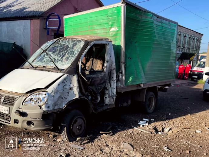 Details: One of the drones also struck a vehicle delivering bread to the Nedryhailiv community.
