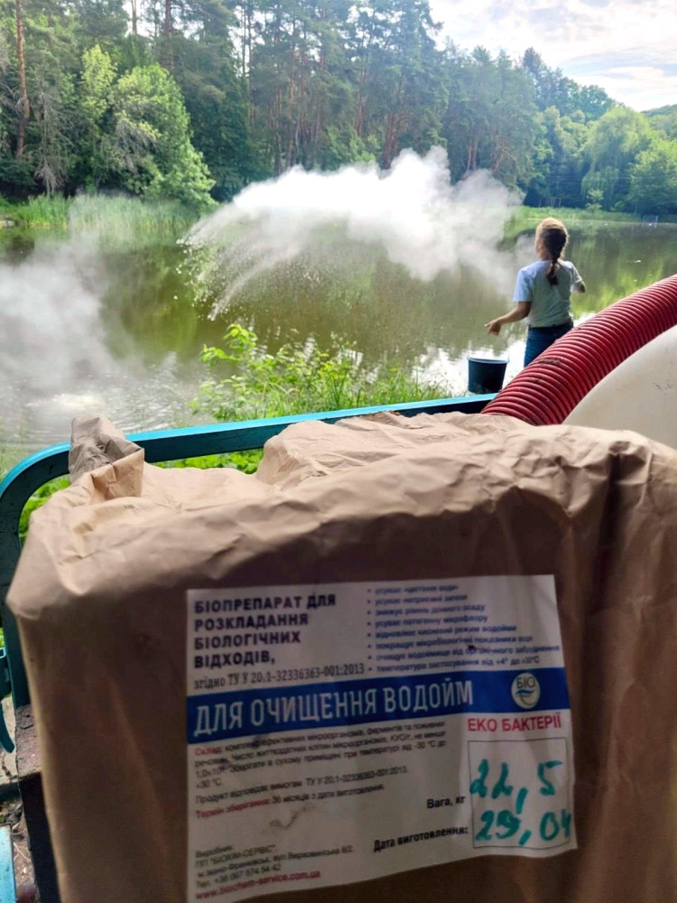 Як пояснили в КП УЗН Голосіївського району, біодеструктор — натуральний, ефективний біопрепарат на основі корисних мікроорганізмів та ферментів для очищення і відновлення екологічного балансу водойм, а також: