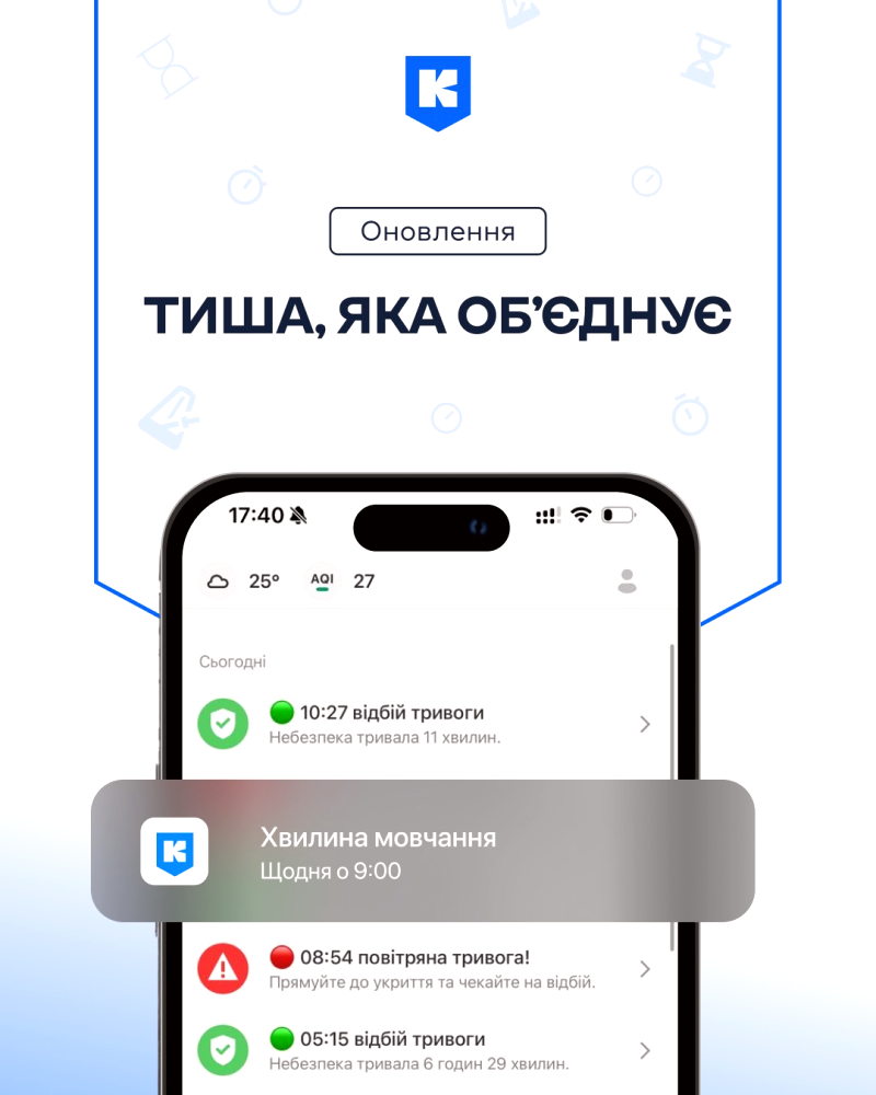 Для користувачів iOS доступна можливість активувати нагадування в застосунку та дозволити Live Activity у налаштуваннях. Щодня о 8:55 вони отримуватимуть сповіщення, а о 9:00 на екрані з'явиться зворотний відлік хвилини мовчання. Користувачам Android потрібно надати доступ до будильника у системних налаштуваннях, щоб отримати інтерактивне нагадування. Сповіщення о 8:55 є необов'язковим.