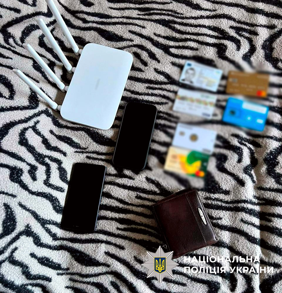 При обшуку у одного з шахраїв у Києві поліцейські забрали мобільні телефони, а також банківські картки та сім-картки, що використовувалися для злочинної діяльності.