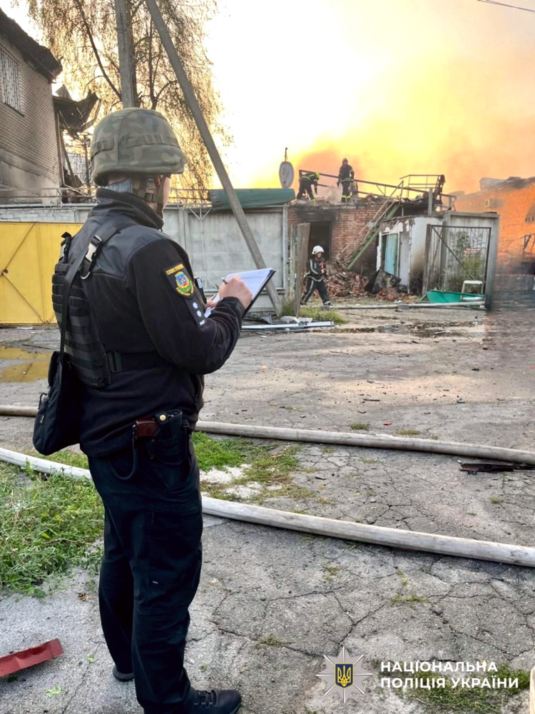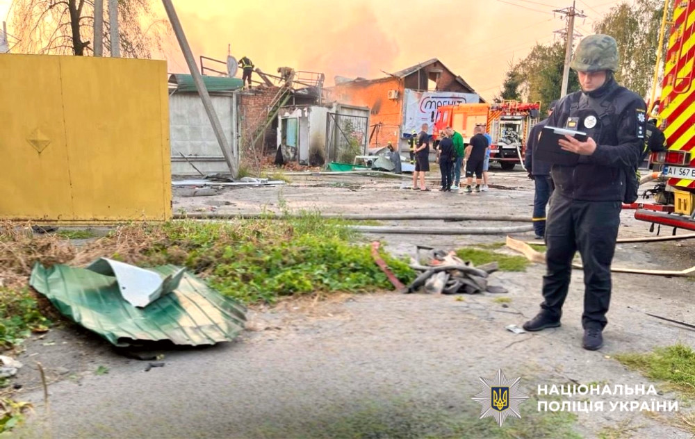 Внаслідок ворожого удару у Білоцерківському районі спалахнула пожежа на одному з підприємств. Було пошкоджено склади, господарські будівлі, а також гаражний кооператив. У результаті атаки знищено шість автомобілів, а вісім транспортних засобів отримали ушкодження. Сім багатоповерхівок і навчальний заклад також зазнали значних пошкоджень.
