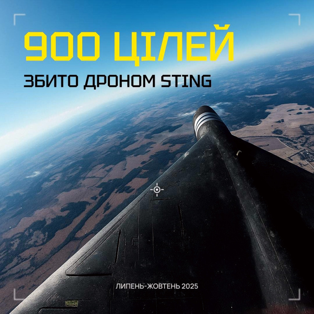 Завдяки дронам-перехоплювачам Sting, розробленим українськими інженерами з 'Диких Шершнів', у період з липня по жовтень 2025 року було знищено 900 цілей. Цю інформацію оприлюднили самі виробники.