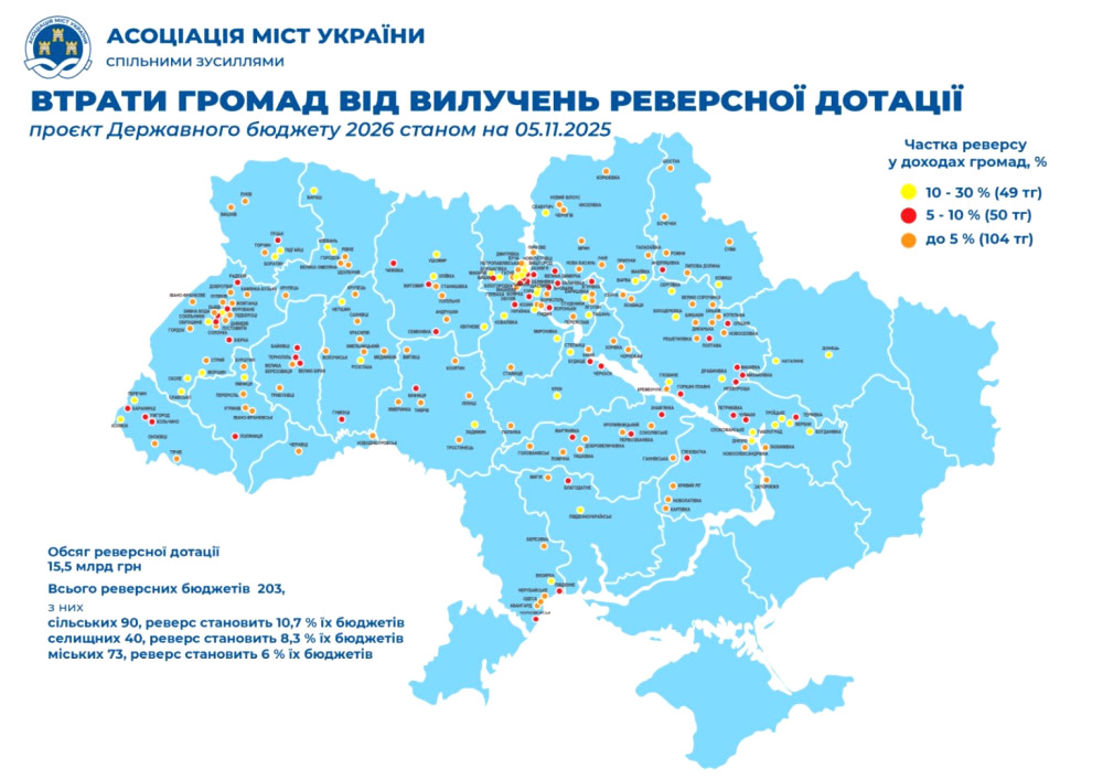 АМУ підкреслює, що вилучення реверсної дотації матиме негативний вплив на фінансову стабільність сільських та селищних громад. Тому асоціація вимагає зберегти ці кошти на місцях.