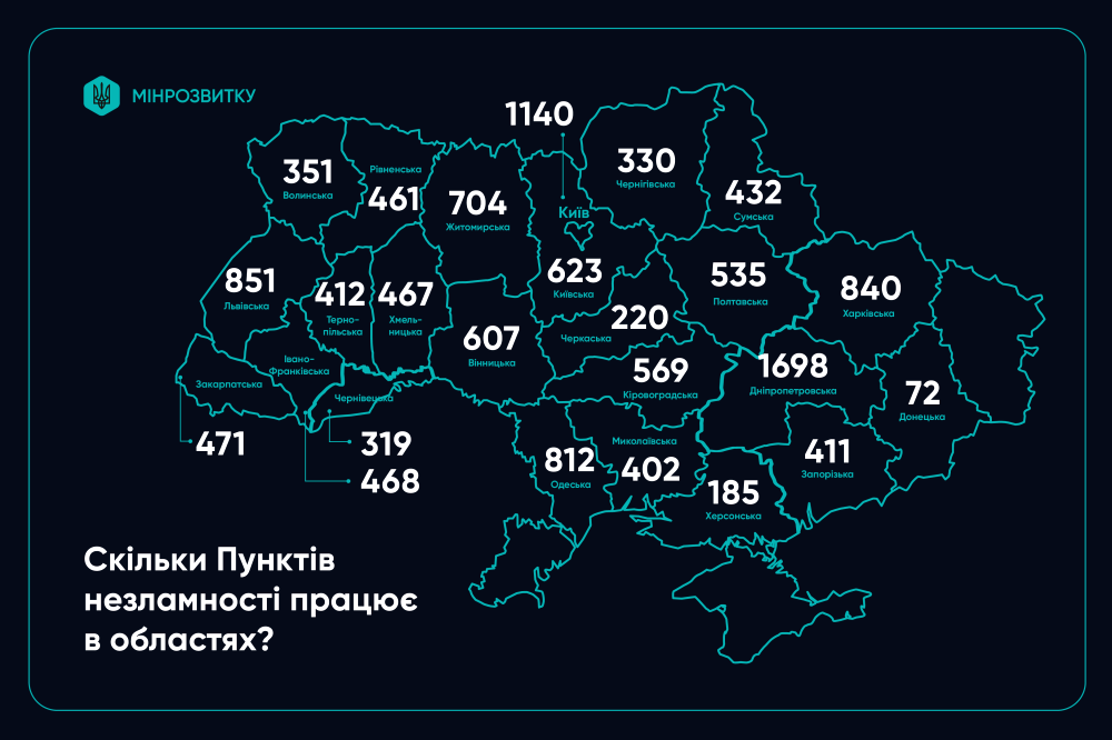 В Україні з'явилося 13 362 Пунктів незламності, з яких 9 025 працюють цілодобово, а 4 337 можуть швидко відкритись за необхідності.