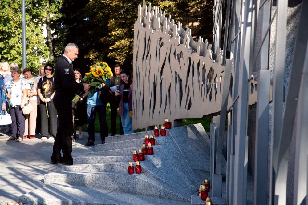 У Києві пройшла церемонія покладання квітів до Стіни пам'яті загиблих воїнів та Меморіального комплексу Героїв-киян. Мер міста Віталій Кличко разом із сім'ями загиблих вшанував пам'ять героїв.