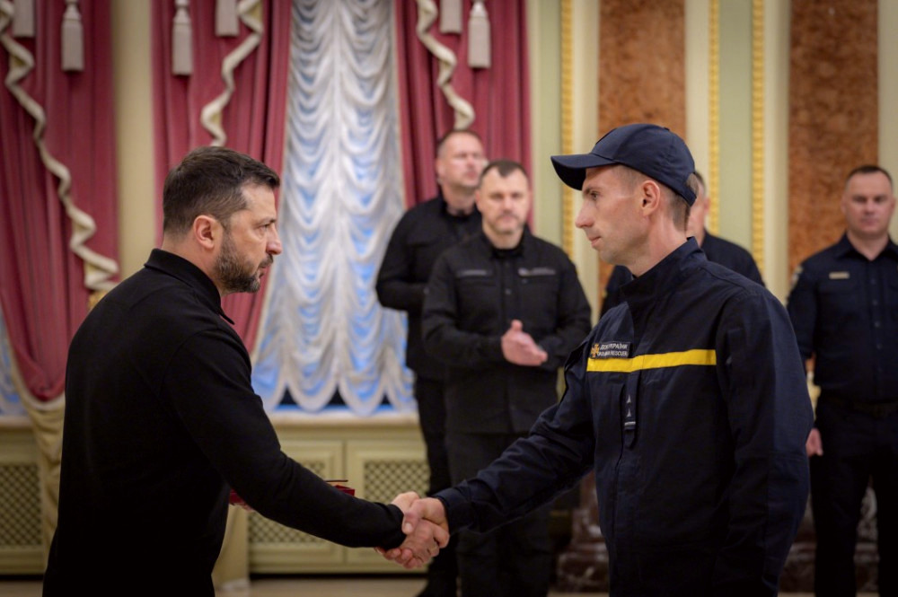 У зв'язку з Днем рятівника, Президент України Володимир Зеленський зустрівся з працівниками Державної служби України з надзвичайних ситуацій, привітав їх з цим важливим святом та відзначив відзнаками.