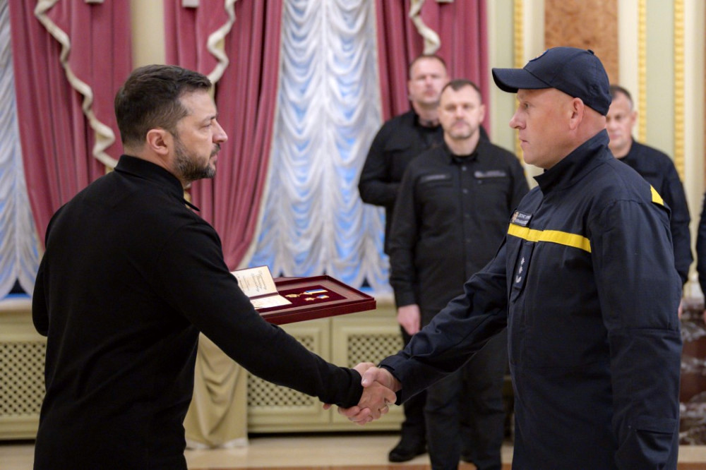 Президент нагородив орденом «Золота Зірка» Героя України, підполковника Віктора Кузьменка, чия відвага та професійність допомогли у ліквідації наслідків атак на Полтавщині. Він брав участь у 49 операціях, рятуючи людей та зупиняючи вогонь на нафтобазі, що загорілася внаслідок обстрілу.