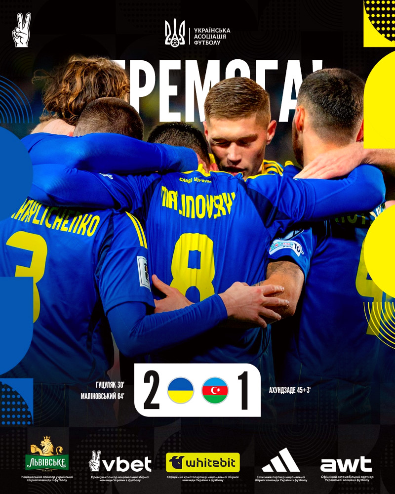 Збірна України з футболу святкує свою другу поспіль перемогу у відборі на світову першість 2026 року. У чотирнадцятому турі кваліфікації «синьо-жовті» з рахунком 2:1 обіграли команду Азербайджану.
