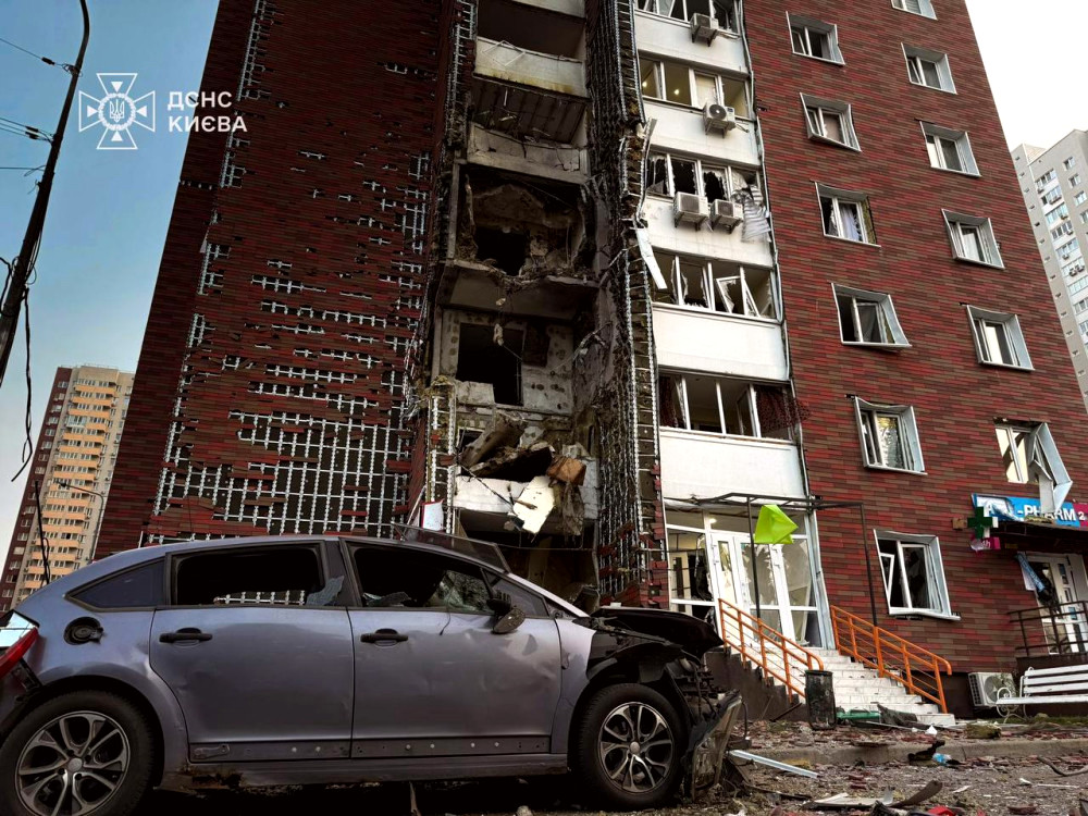 - Оболонський район: пошкодження двох поверхів житлового будинку; займання в офісному приміщенні; падіння уламків на відкритій території.