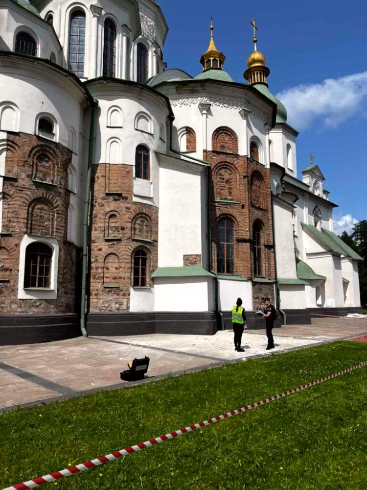 Він уточнив, що вибухова хвиля зруйнувала карниз на головній апсиді цього храму XI століття, назвавши його "душею всього українського народу".