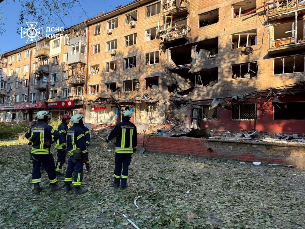 У Солом'янському районі внаслідок атаки було частково зруйновано п'ятиповерховий будинок, а також виникла пожежа на даху семиповерхового житлового будинку.