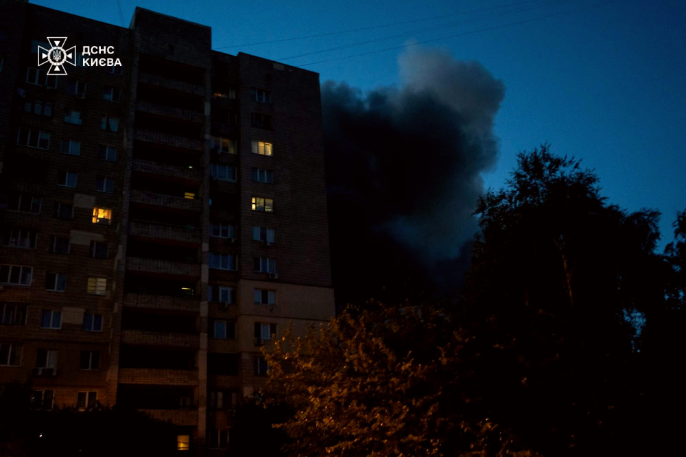 У Святошинському районі в результаті влучання у 14-поверховий житловий будинок виникла пожежа на 2-му і 3-му поверхах, а також у дворі сусідньої багатоповерхівки. Під час пожежі постраждали автомобілі. Ліквідація кількох пожеж у нежитлових будівлях триває.
