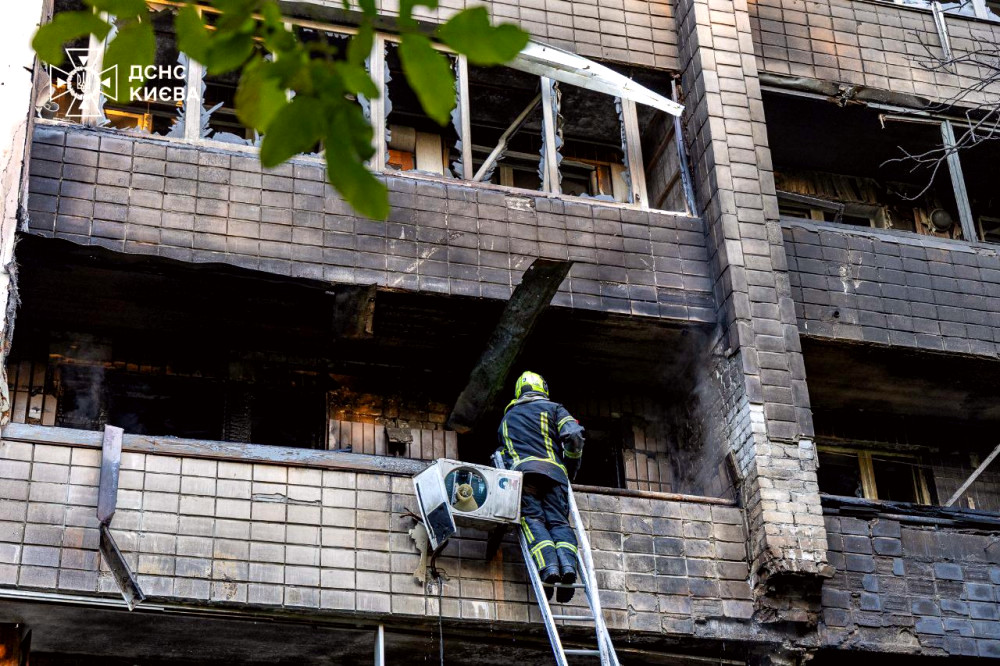 У ніч на 4 липня ворог знову вчинив масовану атаку на Київ. Рятувальники працюють над ліквідацією наслідків у кількох районах.
