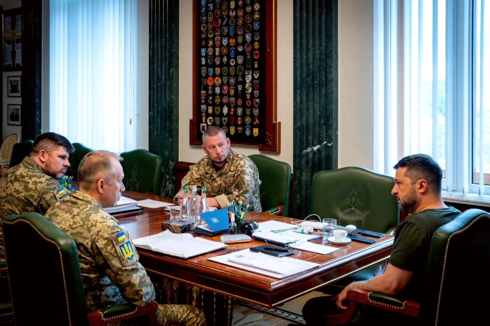 Глава держави Володимир Зеленський зустрівся з військовими, щоб обговорити актуальні питання безпеки на фронті та в прикордонних районах. Він також заслухав звіт про співпрацю з партнерами в рамках «Коаліції охочих».