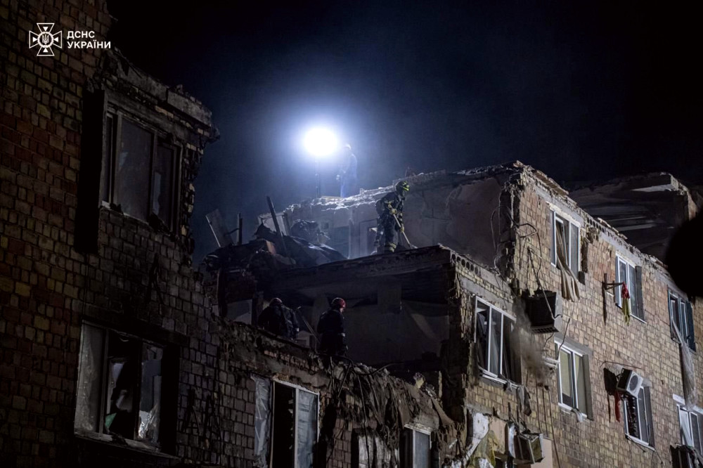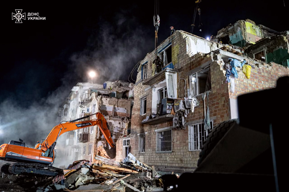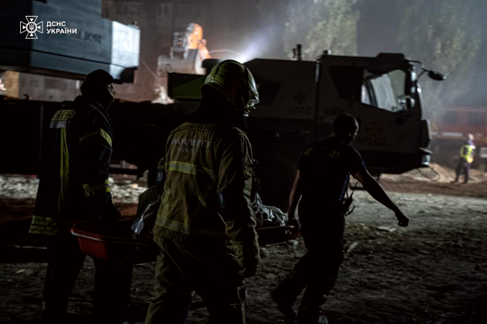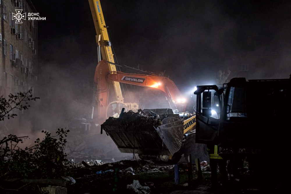 Протягом ночі рятувальні підрозділи працювали на місцях руйнувань, продовжуючи розбирати завали і проводити пошукові роботи.
