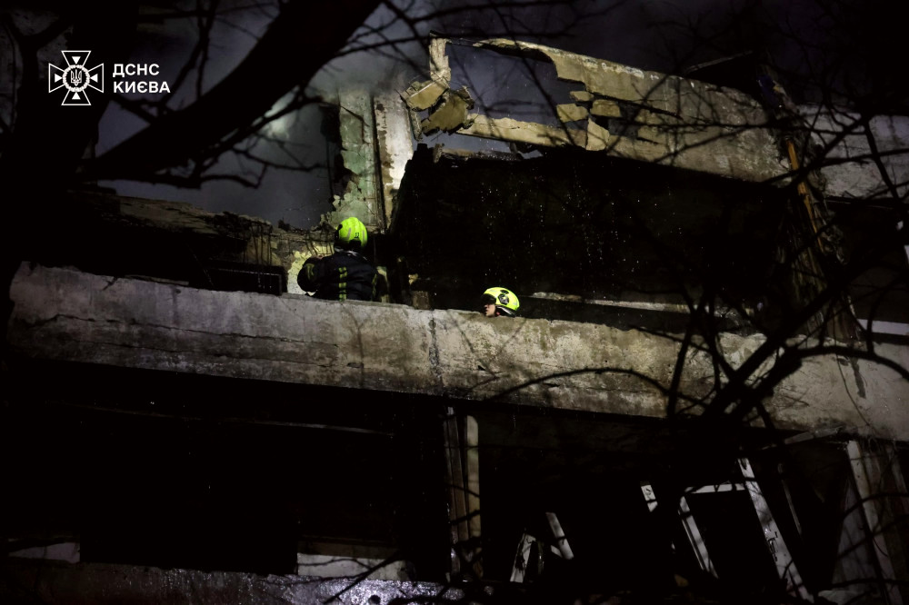 У Дніпровському районі, через влучання в 9-поверховий будинок, загинули дві особи, п'ятеро отримали травми, 17 осіб врятовано, серед них троє дітей. Пожежі на 5-8 поверхах ліквідовані. Продовжуються роботи з розбору конструкцій та пошуку можливих жертв.